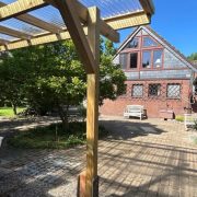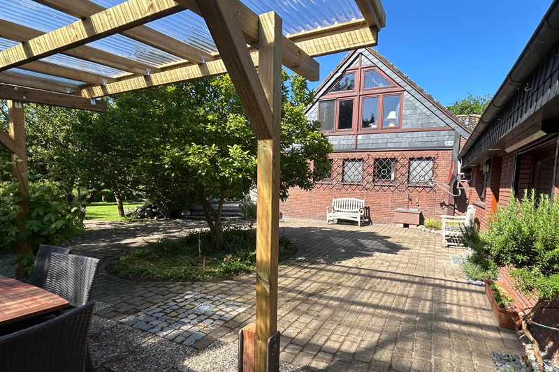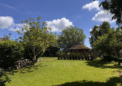 Im Garten können Kinder sicher spielen, während die Erwachsenen auf der Terrasse sitzen oder unter der gemütlichen Pergola entspannen. Gartenmöbel und eine Sitzecke laden dazu ein, die frische Ostseeluft zu genießen. Ein Grill steht ebenso bereit, wie eine Tischtennisplatte und weitere Gartenspiele.